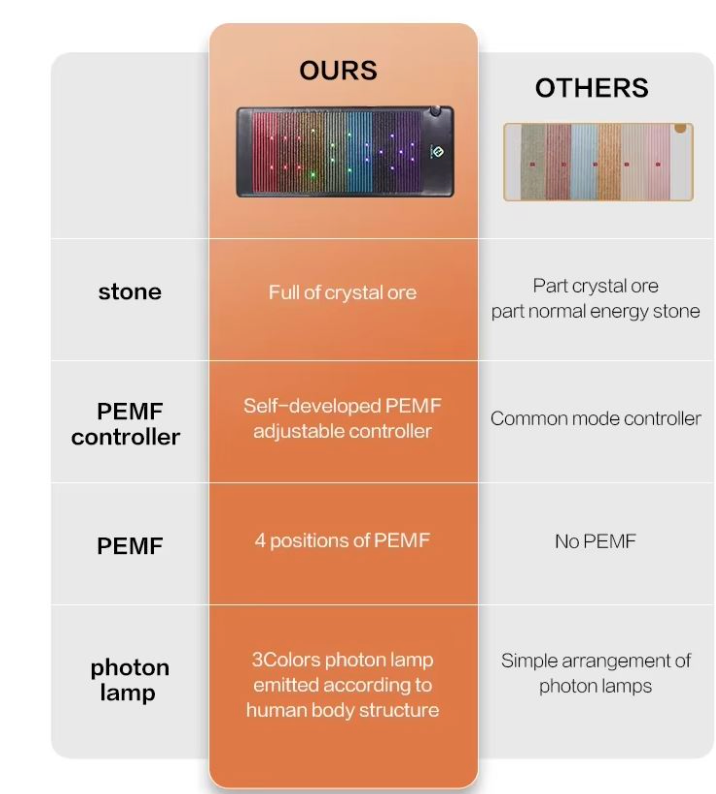 - Controller: Set PEMF pulse level, FIR temperature, photon light, and timer